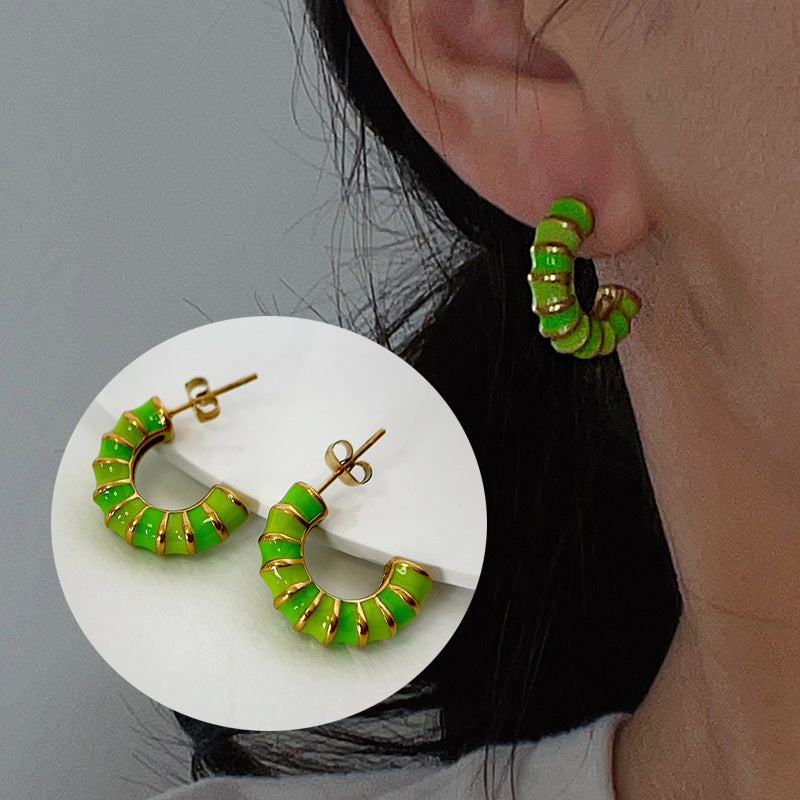 • Nom du produit : Boucles d'oreilles à clous en forme de C, en bambou, plaquées or 18 carats, émaillées et colorées, effet coulant.