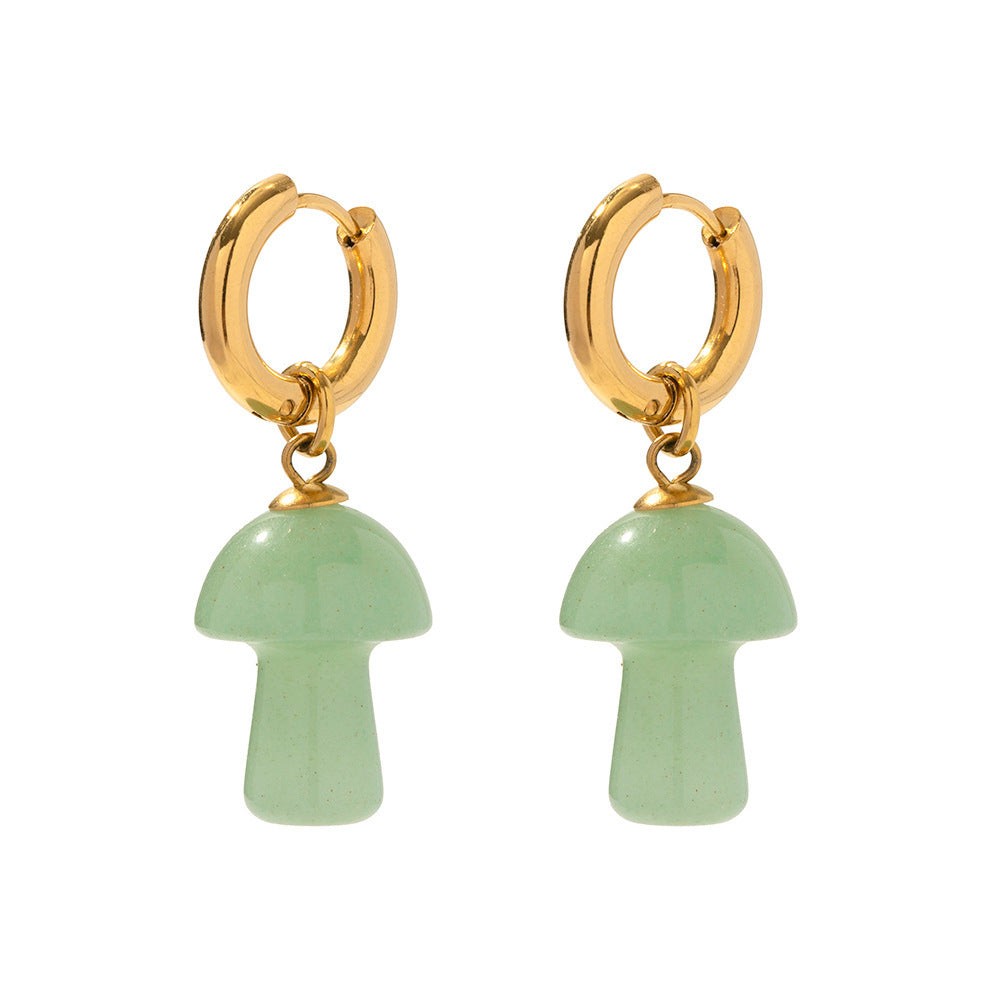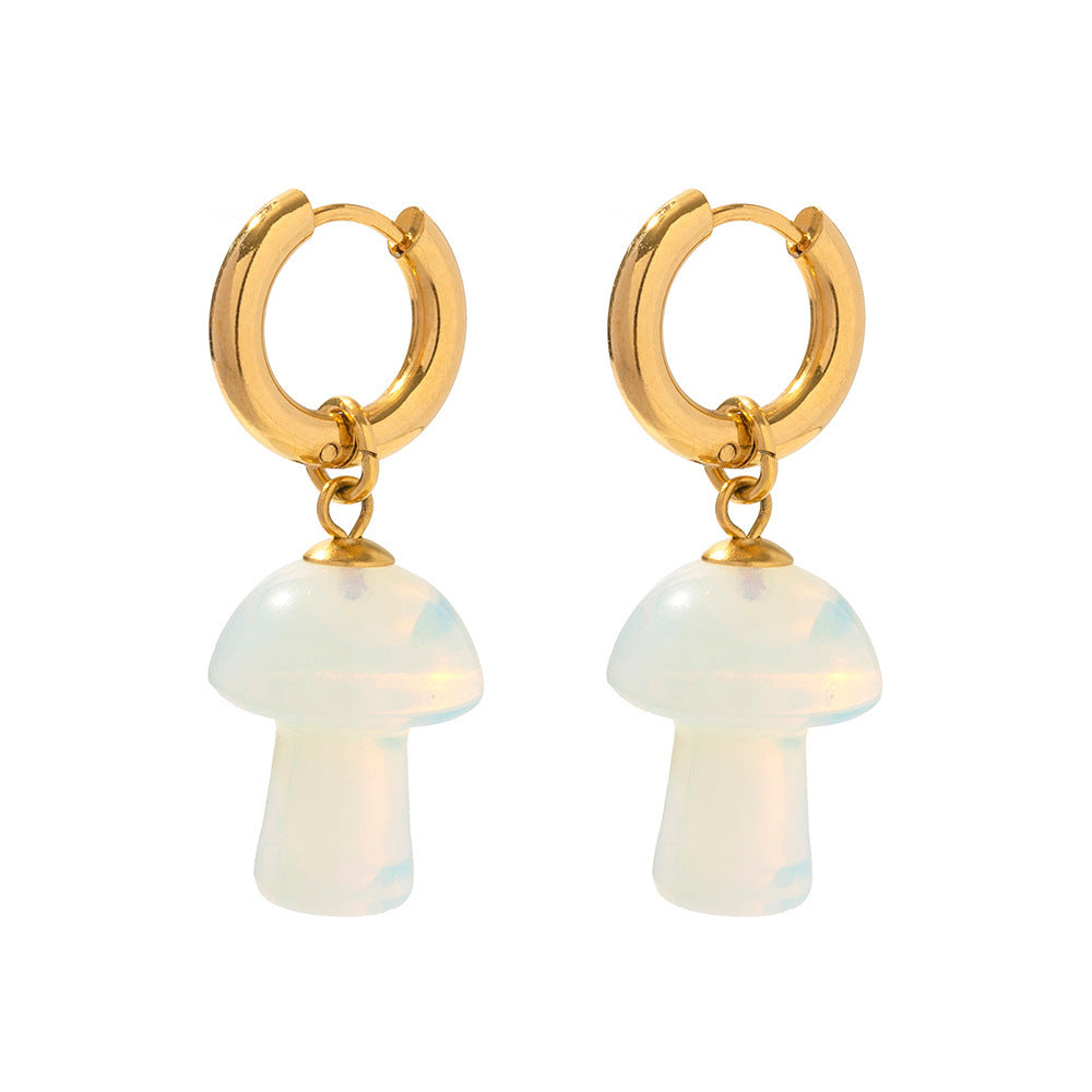 Stainless Steel French Vintage Natural Stone Mushroom Earrings